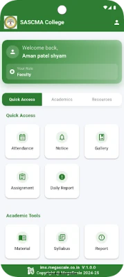 The SASCMA Faculty App is the official application for faculty members of SASCMA College, Surat. It offers an easy and efficient way to manage student attendance, exam marks, assignments, and timetables. Faculty can also access syllabus details, library records, and stay updated on upcoming college events. This all-in-one platform streamlines academic responsibilities, enhances communication with students, and keeps faculty organized and connected. Stay on top of your teaching duties with the SASCMA Faculty App.