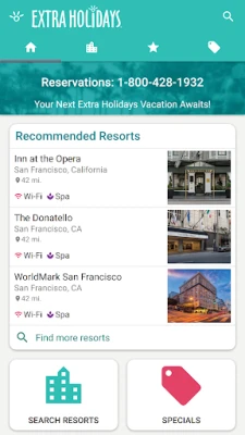 Extra Holidays specializes in offering resort stays at hotel prices with quality vacation accommodations throughout the United States, Virgin Islands, and Puerto Rico. The Extra Holidays app quickly and easily connects you to the best resort stays available.