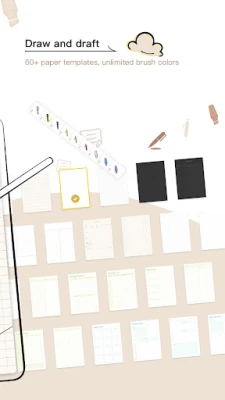 • Access a wide library of covers and templates—planners, grid layouts, lined sheets.