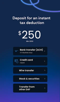Once you’ve signed up, deposit your charity giving for easy access to over 1.5 million verified charity organizations, and start donating to any charity of your choice.