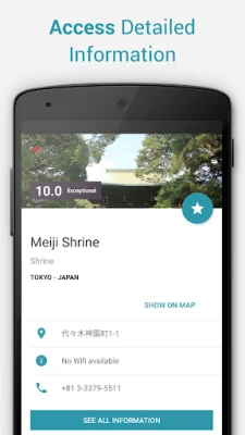 Have all the information offline and freely portable. For each destination, access comprehensive and up-to-date information covering thousands of places, attractions, points of interest and many hotel booking options within this Tokyo travel guide.