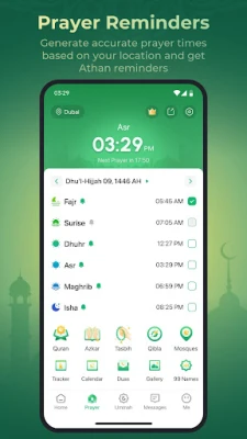 🕌 Prayer times - Based on your current location, this app provides accurate prayer times and plays the magnificent audio of the Athan before each prayer.